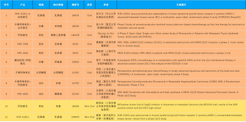 15款创新药包括10款已上市产品:注射用瑞康曲妥珠单抗(艾维达®,研发代号:SHR-A1811)、注射用卡瑞利珠单抗(艾瑞卡®)、苹果酸法米替尼胶囊(艾比特®)、甲磺酸阿帕替尼片(艾坦®)、马来酸吡咯替尼片(艾瑞妮®)、阿得贝利单抗注射液(艾瑞利®)、羟乙磺酸达尔西利片(艾瑞康®)、氟唑帕利胶囊(艾瑞颐®)、瑞维鲁胺片(艾瑞恩®)、海曲泊帕乙醇胺片(恒曲®),以及5款未上市产品,包括KRASG12C抑制剂HRS-7058、KRASG12D抑制剂HRS-4642、选择性的AR-PROTAC(雄激素受体-蛋白降解靶向嵌合体)小分子HRS-5041、抗PD-L1/TGF-βRII双抗瑞拉芙普-α注射液(SHR-1701)、Trop-2 ADC SHR-A1921。2类新药盐酸伊立替康脂质体注射液(II)(越优力®)及国内首仿药昂丹司琼口溶膜(艾其速®)各有1项研究入选。本文特对研究成果做了梳理,带领各位读者领略PG医药创新之光。